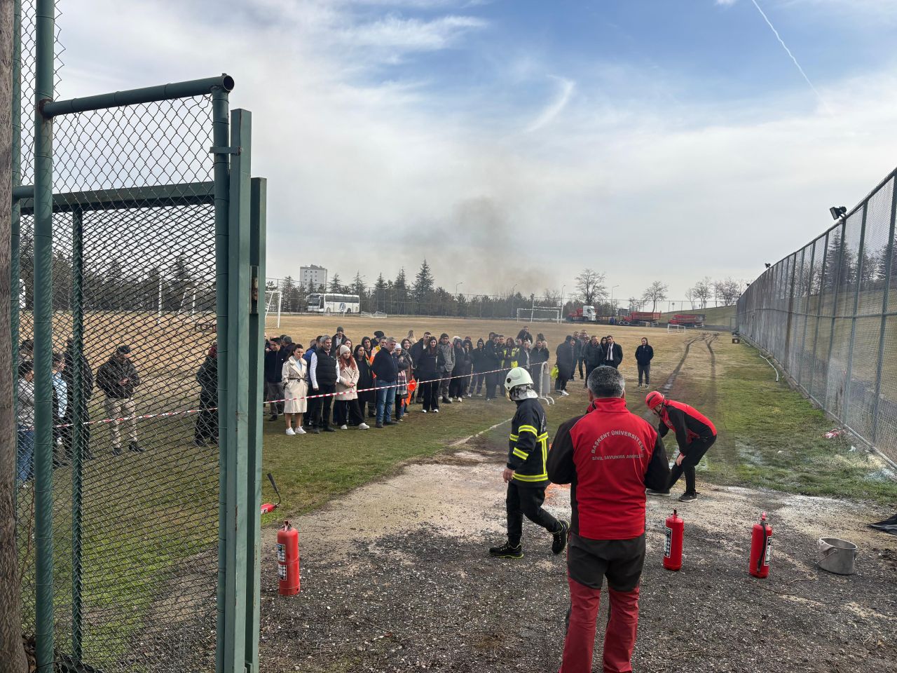 * Sivil Savunma Kanunu (7126) ile İş Yerlerinde Acil Durumlar Hakkında Yönetmelik kapsamında, üniversitemiz kampüsünde görev yapan personele her yıl periyodik olarak Sivil Savunma, Afet Bilinci, Yanma, Yangın ve Tahliye konularında eğitimler ve tatbikatlar yapılmaktadır. * Başkent Üniversitesi Sivil Savunma Amirliği tarafından 4-5 Şubat 2026 (10.00-12.00) tarihlerinde yapılan Sivil Savunma Eğitiminin ilk aşaması Prof. Dr. İhsan Doğramacı Konferans Salonunda teorik olarak, sonrasında çim sahada uygulamalı tatbikat şeklinde gerçekleştirilmiştir. |